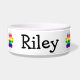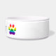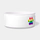 Deze keramische hondenkom heeft twee regenbooghondenpootdrukken en kan worden gepersonaliseerd met de naam van je hond. Kies om het even welke doopvontstijl en kleur die u in plaats van de hier getoonde zwarte verkiest. Je kunt de pootafdrukken rond bewegen en hun grootte aanpassen zodat dit hondengerecht precies geschikt is voor je hond. Maakt een uniek en leuk cadeau voor elke hondenouder!