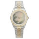 Deze prachtige Watch toont een foto van een kleurrijke regenboog tegen een grijze hemel. De regenboog is prachtig omhuld achter een boom die een prachtig uitzicht natuur creëert op zijn mooiste.