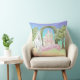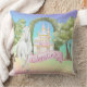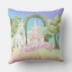 Deze magische en betoverende douane gooit kussens kenmerkt een waterverf stijl sprookje prinses thema over een regenbooggradiënt. Een afbeelding van een kasteel wordt in de verte afgebeeld, voorbij de tuinen. Een majestueus wit paard loopt voor het afbeelding, onder pastelbloemen. Een steekproefnaam wordt gedrukt over een roze banner.