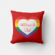 Dit kussen is voorzien van een hart met een regenboogstreep ontwerp overlay door een wit hart met een aanpasbare tekst sjabloon. Show je ware kleuren, steun huwelijksgelijkheid en vier gay pride.