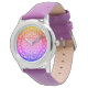Dit leuke horloge is zeker een favoriet van een jong meisje of tiener. Er is een wit lacy mandela bovenop een regenboogachtige achtergrond van gele, oranje, rode, roze, paars en blauw. Het horloge wordt getoond met een paarse horlogeband maar u kunt het met veel andere keuzen aanpassen.