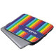 Deze laptop met heldere regenboogstrips heeft een indigo blauw bannerlint met witte stikkende details over de bovenkant. Het is gepersonaliseerd met een naam of een tekst die u wilt toevoegen.