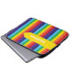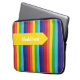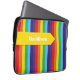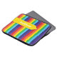 Deze glazen rainbooggestreepte laptophoes heeft een gele bannerlint met witte stikkende details over de bovenkant. Het is gepersonaliseerd met een naam of een tekst die u wilt toevoegen.