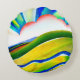 Digitaal waterverf landschapsontwerp in levendige regenboogkleuren en texturen met een zonsopgang en uitstekende zonnestralen.