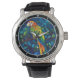 Rainforest Radiance" - Stained Glass Parrot Wall Horloge