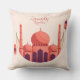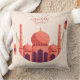 Celebrate the sacred beauty of Ramadan with this elegant pillow design featuring a stylized mosque framed within a glowing crescent moon. Rich red and orange tones evoke warmth and devotion, while hanging lanterns and a soft patterned background add festive charm. The graceful “Ramadan Kareem” script completes this spiritual accent—perfect for prayer spaces, seasonal décor, or heartfelt gifts.