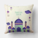 Celebrate the joy of Ramadan with this lively pillow design featuring a multicolored mosque with domes and minarets in purple, green, and pink hues. Hanging lanterns and soft clouds float above, set against a starry purple sky that evokes serenity and festivity. The bold “Ramadan Kareem” greeting adds a cheerful touch—perfect for seasonal décor, prayer spaces, or heartfelt gifts.