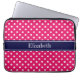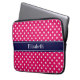 Raspberry White Polka Dots Navy Blue Name Monogram Laptop Sleeve