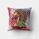 Rastafarisch man met dreadlocks op de achtergrond van grunge print design met rode, blauwe en witte kleuren. Patroon penseelstreken.