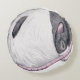 Een must have voor alle rattenliefhebbers: Een zwarte rat met capuchon in slaap gekruld uit het 'pluizige ratten'-assortiment van rattenschilderijen van de Britse rattenredder en kunstenaar J.M.Tellam BA (hons), op een rond kussen, in een keuze uit katoen of polyester. Auteursrechten van kunst Mindgoop