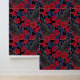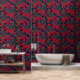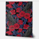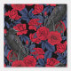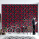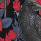 Handgeschilderd patroonontwerp met ravenzitjes op een metalen hek met een sleutel op een lint in de snavel en rode rozen