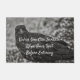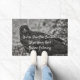 Een zwarte en witte foto van een zwarte vogel met een serieuze gezichtsuitdrukking, die zich waarschijnlijk afvraagt wat er rond gebeurt. De witte tekst op de deurmat luidt: "Tenzij u kunt Leviteren, veeg uw voeten alvorens in te gaan". Copyright afbeelding ©2019 Kimberly J Tilley.