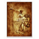 Dit originele ontwerp, geschilderd door Chaos the Red, kenmerkt deze skeletkerel die piano speelt in een mooie sepia-toon in een rokerige blauwe nachtclub.