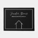 Deze moderne konijnenmat is de perfecte manier om in een open huis op de markt te komen. Personaliseer met uw naam en bedrijf van de vastgoedmakelaar over het kleine, minimalistische zwarte en witte ontwerp van een eenvoudige lijntekening van een huis.