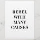 Een rebel die vele oorzaken heeft. Oorspronkelijk tekstontwerp.