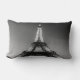 Een rechthoekig kussen met een zwart-witfoto van de Eiffeltoren bij zonsondergang