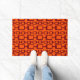 Dit portret heeft een modern ontwerp uit de middeleeuwse eeuw van maroon afgeronde rechthoeken die met elkaar verbonden zijn op een gebied van sinaasappel.