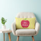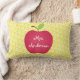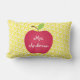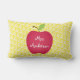 Red Apple persoonlijke Lumbar-kussen van leraar. Ideaal voor de klasstoel van de leraar. Beide zijden zijn gepersonaliseerd met de naam van de leraar. De achtergrond is geel & wit loops patroon.