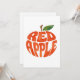 The design features the words 'Red Apple' creatively arranged in the shape of an apple with a green leaf on top. The typography is bold and colorful, giving a cheerful and vibrant impression.