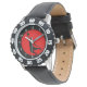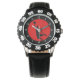Een zwart basketbalspeler silhouet is in proces van een slam dunk op een felrode cirkel achtergrond. De witte getallen op een zwarte cirkelrand maken het horloge makkelijk leesbaar. Perfect voor de basketballer of fan! *Clip art die in dit ontwerp wordt gebruikt, is auteursrechtelijk beschermd door Encore Software, Inc., die het gebruik ervan aan haar licentiegevers toestaat. Alle rechten voorbehouden.