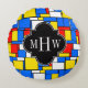 Red Blue Yellow Mondrian Blk Quatrefoil 3 Monogram Rond Kussen