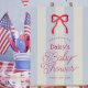 This coquette baby shower napkin features a red bow on a cream background with Pale blue stripes. Personalize it for your needs. You can find matching products at my store.