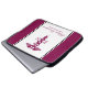 Personalized laptop sleeve with a stylish red cadaceus symbol with the letters R N on either side. Eenvoudig design.