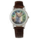 Een horloge met een kleurrijk wildlife afbeelding van een rode vos die in groene grassen ligt. Dit schattige wezen heeft zachte vacht en zachte ogen. Afbeelding heeft een dromerig magisch gevoel.