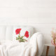 Een rood geranium op een witte achtergrond, een eenvoudig maar opvallend floreel/botanisch kussen.