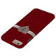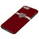 Chic iPhone 6 Plus hoesje, gemaakt in graphics van een rode tufted velvet-look, met een ruby geschetst diamanthart, op een zilveren glitterachtig uitziend lint. Pas het rode monogram met één letter aan. Glamoureus om je iPhone 6 te beschermen en er ook stijlvol uitzien, en een geweldig cadeauidee.