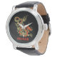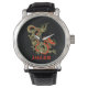 Een felle zwarte Chinese draak geschetst in goud versiert dit polshorloge. Rode accenten markeren de kaak, het hoofd en de ruggengraat van de draak. Jouw naam is hieronder in vet goud geschreven.