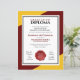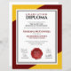 Hogescholen, universiteiten, middelbare scholen en instituten voor hoger onderwijs kunnen verfijning toevoegen aan afstuderen met dit moderne, eigentijdse ontwerp, dat elegante belettering bevat op een rode, gouden en witte achtergrond. Pas aan met de gegeven- en familienamen van de student, de faculteitsnaam, de naam van de school/hogeschool/universiteit, de locatie en datum van het afstuderen, maximaal vier (4) ondertekenaars en een academische logo of slogan. Kleuren en lettertypen kunnen naar wens worden gewijzigd. Ontwerp © W.H. Sim, Alle rechten voorbehouden. Zie meer op zazzle.com/expressionsoccasions