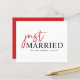 Just Married! kondig je bruiloft aan met deze aanpasbare foto trouwaankondiging. Het kenmerkt handgeschreven typografie in rood. Personaliseer u door uw gegevens toe te voegen. Deze moderne, gewoon gehuwde aankondiging is perfect voor elk trouwthema of seizoen. Andere kleuren zijn beschikbaar.