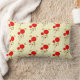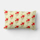 Een lumbale kussen. Een patroon ontworpen met een charmerende tekening van verschillende witte rode bloemen met vetharten bevestigd aan een groene stengel. 2 gele vlinders die in de buurt hangen. Verketst met een zwarte omtrek. Bleke gele achtergrond.