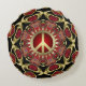Prachtige ronde kussen met Golden Peace-symbool op gewaagde, levendige rode appelhartvormen, zwart-goudstammodel + een beetje zoals een batik Geometric Fusie." Verbeter uw slaapkamer, lounge of meditatieruimte met unieke en alternatieve kunstvormen.design" webgrl.art