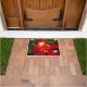 Het kunstwerk op deze Deurmat is een originele foto van ZoeSPEAK van een rode hibiscusbloem. Op de foto wordt het midden van de bloei gestraald door zeer fel zonlicht dat door een opening tussen de geelgroene bladeren van de struik gluurt. De gele meeldraad wordt omringd door de felrode bloemblaadjes van de bloem, die er geel uitzien waar de zon het helderst is. De rest van de bloem herfsten in de schaduwen in een dieprode kleur tegen de olijfgroene bladeren. Er staat een gele sticker met het woord "Welkom" erop. Deze items zijn ingesteld voor u om te verplaatsen, te wijzigen of te verwijderen zoals u wilt.