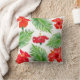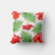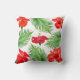 Red Hibiscus Flowers & Palm Leaves op White Kussen