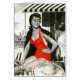 Artist:onbekend | Vrouw in een rood badpak met mannen in het zwembad