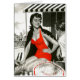 Artist:onbekend | Vrouw in een rood badpak met mannen in het zwembad