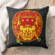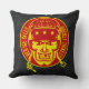 Red Ice verkoopt Hockey Tickets Sierkussen. Groot 'n gedurfd design in rood en geel met een gemiddelde ijshockeyspeler! Tekst: Rood ijs verkoopt ockey tickets.