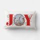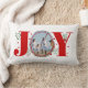 Voeg wat feestelijke vrolijkheid toe aan uw huis met deze Red Joy met bessen Kerstmis foto Holiday lumbale kussen. Dit kussen heeft een uniek design dat "JOY" uitdrukt met rode bessen en groene bladeren. In het midden van het woord kun je het personaliseren met je eigen foto, waardoor het een geweldig geschenk of aandenken is. De achterkant van het kussen heeft een rood stippenpatroon dat de voorkant aanvult. Dit kussen is perfect voor het toevoegen van wat comfort en stijl aan uw bank, bed, of stoel tijdens het vakantieseizoen.