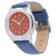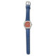 Uw kind zal show van goede smaak en een vleugje patriottisme dragen dit gewaagde horloge met een rood gezicht, blauwe band en witte cijfers.