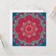 Deze prachtige, zeer gedetailleerde mandala werd gemaakt terwijl ze geïnspireerd werd door lotusbloemen. Het ontwerp heeft prachtige, diepe rode en oranje kleuren die door blauw en blauwgroen zijn afgezet.