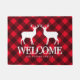 Red lumberjack buffalo pleisterherten, op maat, welkom Doormat. Maak je eigen persoonlijke mat voor thuis, op de winkel, in het bedrijfsleven, enz. Creëer uw eigen mat / tapijt voor de deur, de ingang of de hal aan de voorzijde. Verkrijgbaar in kleine en grote afmetingen. Robuust landscheerontwerp met twee rendiersilhouettes en typografische sjabloon. Elegant Holiday cadeauidee voor vrienden en familie. Voeg naar keuze uw eigen offerte, familienaam, bedrijfsnaam of adres toe. Donkere rode of aangepaste kleur. Trendy kerstversieringen voor het huis.