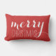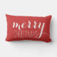 Tijdelijk kerstfeest | Vakantiegeld Sierkussen. Moderne typografie-ontwerp door ELKE CLARKE© "Merry Kerstmis", geschreven in een tekstbedekking met witte scripts voor scripts, met een effen rode kleur Andere kleuren die op aanvraag verkrijgbaar zijn. Perfecte accentuleuze kussen voor uw vakantiehuisdecor.