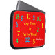 Elke keer is de Tijd van de Partij, mijn gekke klokontwerp, decoreert deze laptophoes. Het gebrek is rood, maar u kunt "aanpassen"klikken om UW EIGEN ACHTERGRONDKLEUR voor dit sleeve te KIEZEN. Het is gepersonaliseerd met witte manuscriptletters. Geweldig geschenk voor afstuderen, of voor de rug-naar-school of Kerstmis. Alle rechten voorbehouden © 2014 Alan & Marcia Socolik.