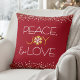 "Vrede, vreugde en liefde." Een leuke, speelse goudglitter met witte sneeuwvlokillustratie en moderne, serindien-typografie op een rijke, rode achtergrond helpen je om mee te doen in het vakantieseizoen. Witte confetti en faux gouden stippen boven en onder maken het uiterlijk compleet. Op de achterkant is een gigantische nepgouden folie en witte sneeuwvlok boven rood. Beleef de warmte en de vreugde van de feestdagen wanneer je ontspannen op deze verbluffende, moderne, grafische manier, en kussen gooit. De kaarten van de gelijke, enveloppen, stickers, canvas tassen, het verpakken van papier, dienende dienbladen, huisdecor, en meer zijn ook beschikbaar. Het is een geweldig cadeau voor iemand speciaal! U kunt dit gemakkelijk personaliseren werpen kussen. Stuur me alstublieft alle vragen of verzoeken.