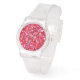 Red Pink Glitter Clear Strap Women's Watch Horloge