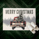 Red Plaid Merry Christmas Truck Custom Family Name Deurmat