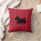 Een Schotse Terrier en rode plaid versiert dit stijlvolle kussen. Het ontwerp is van originele kunst.